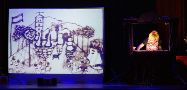 La creación de animaciones con arena es un arte efímero que se realiza con las manos, en un soporte retroiluminado.