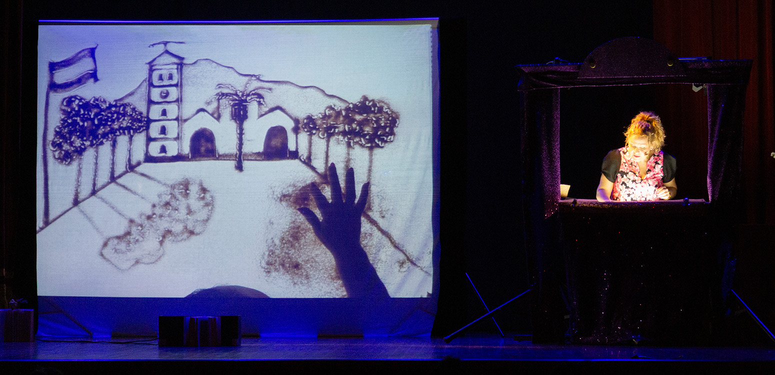 La creación de animaciones con arena es un arte efímero que se realiza con las manos, en un soporte retroiluminado.
