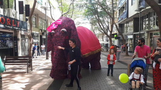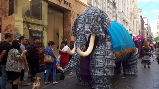 «La troupe Fantón» es un espectáculo de calle en homenaje a la fauna del Continente Africano con títeres gigantes donde tres elefantes pasean por la ciudad para recordarnos la imperiosa necesidad de respetar a la naturaleza.