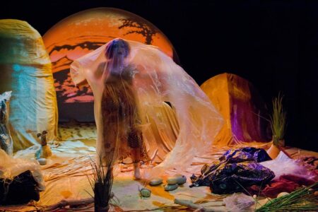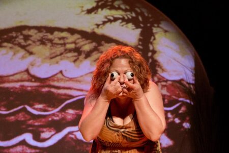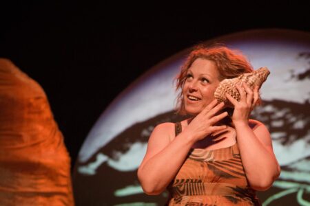 En la arena de la playa, María nos habla de las historias que inventaba a través de los elementos de la naturaleza cuando era pequeña y narra la historia de cómo el travieso duende Puck enreda a las parejas con el jugo de una flor mágica.