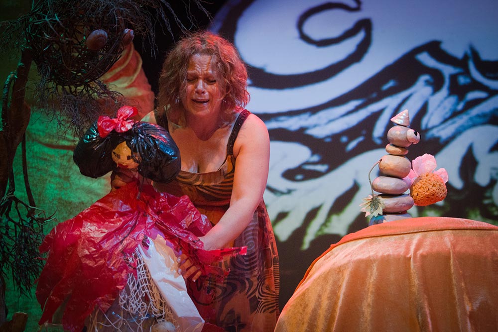 En la arena de la playa, María nos habla de las historias que inventaba a través de los elementos de la naturaleza cuando era pequeña y narra la historia de cómo el travieso duende Puck enreda a las parejas con el jugo de una flor mágica.